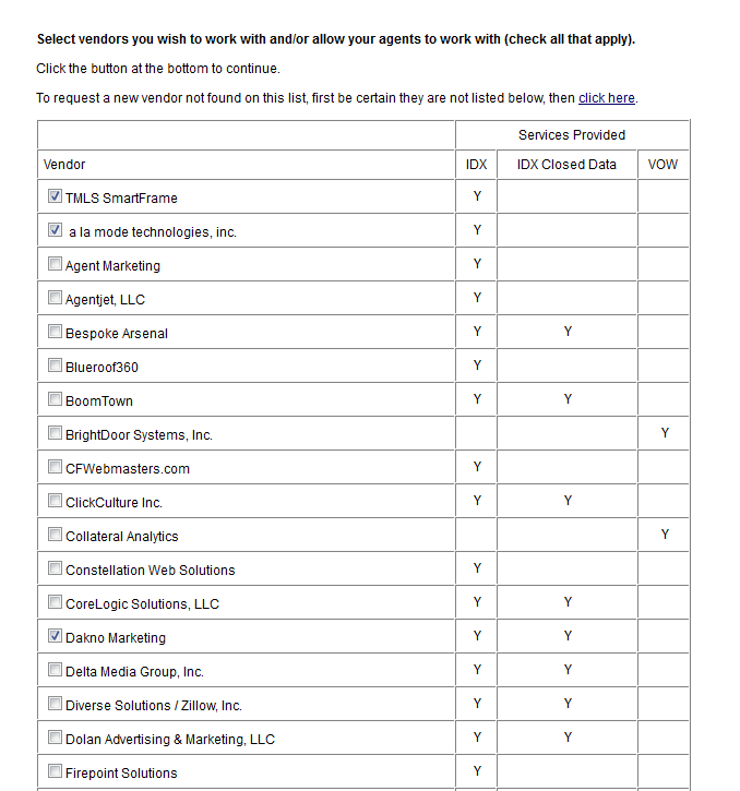 Association staff are more easily able to check IDX rules compliance. They are notified when a member is terminated or switches firms and must re-sign the data agreements. They are able to manage the list of data vendors from which the agents and brokers may select.